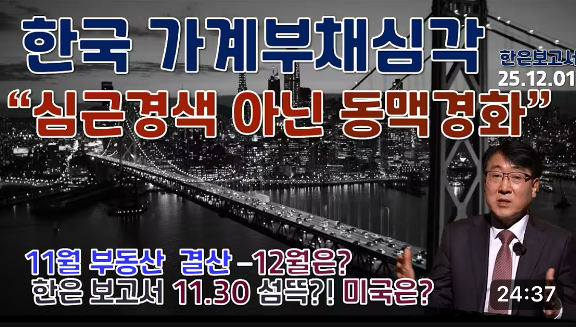 한국은행 보고서에 나타난 가계부채 문제와 2025년 11월 부동산 시장 분석 및 글로벌 경제 리스크를 다루고 있습니다.