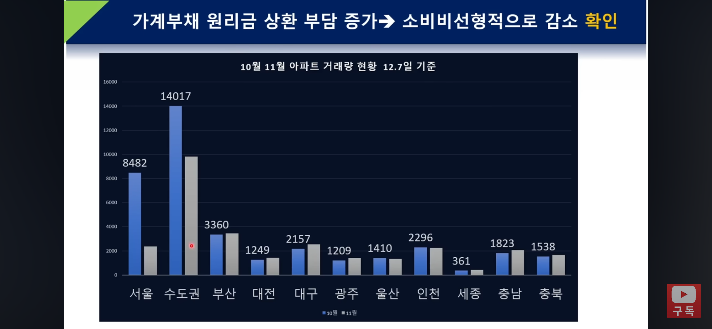 * 서울: 10월 거래량 대비 12월 거래량이 현저히 줄어 (1/4 토막 수준), 거래 절벽 현상이 심화되고 있습니다 [08:05].